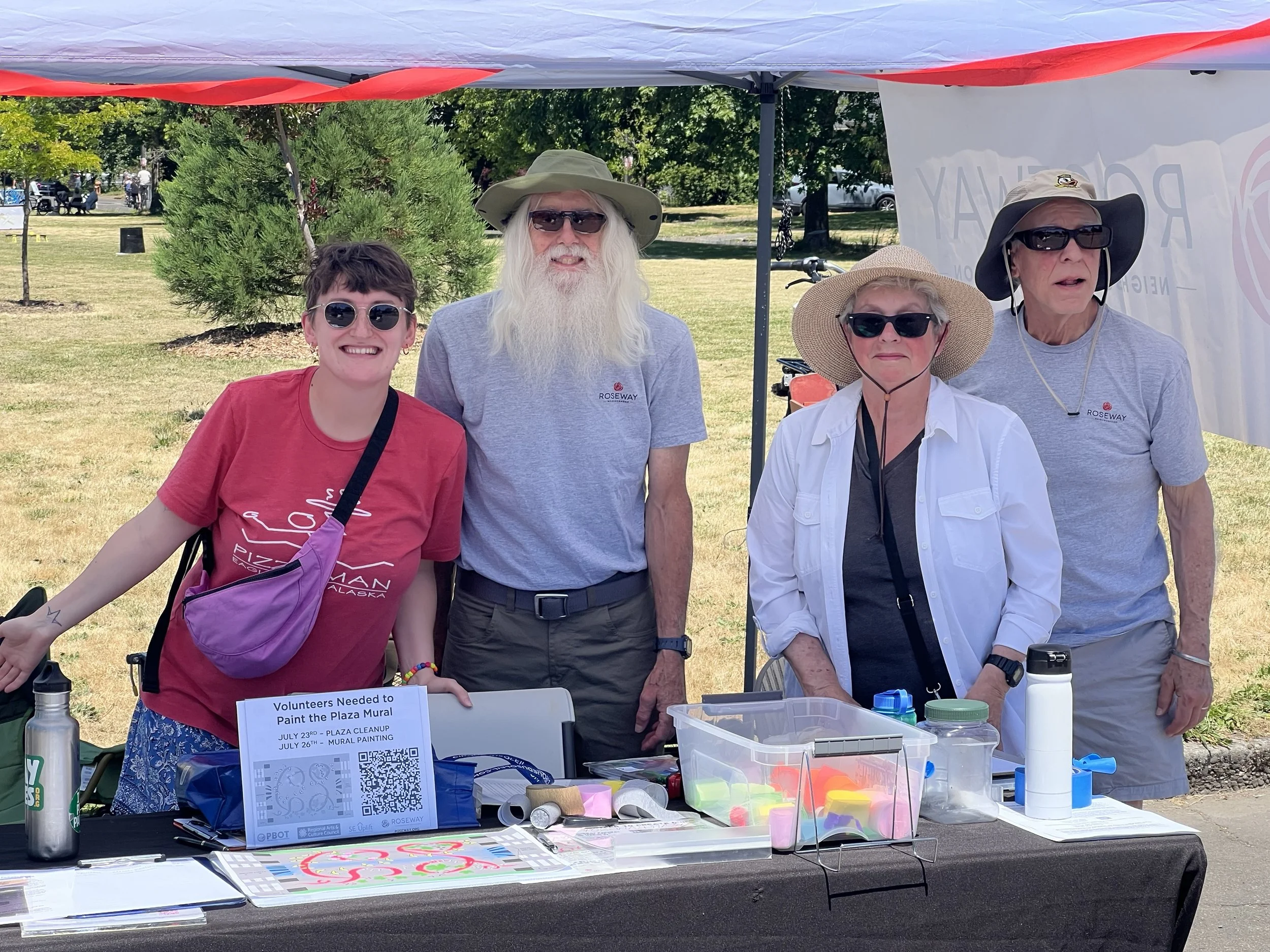 In June, the NE Portland / Cully Sunday Parkways event rolled through the Roseway neighborhood, including a stop at the Roseway Plaza. RNA board members and volunteers made streamers for the cyclists and provided a spot to rest and enjoy the parkway.