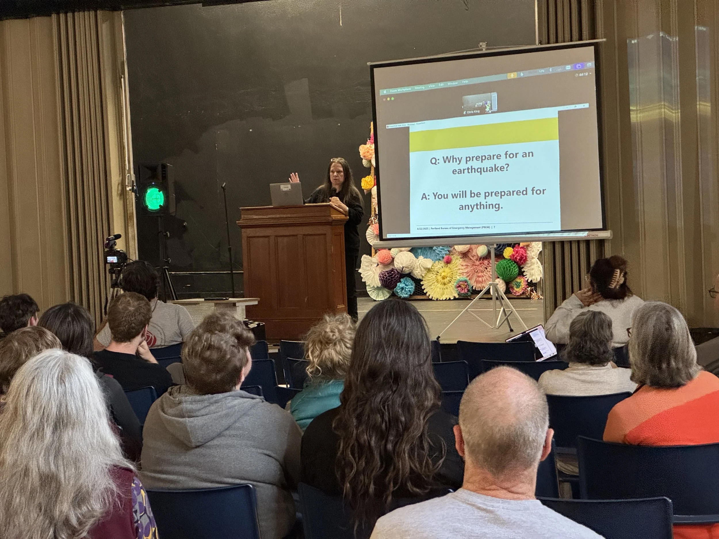 In April, RNA hosted a community meeting focused on Emergency Preparedness. Kathy Reese from the Portland Bureau of Emergency Management (PBEM) presented about how to be prepared for an emergency, and in particular a major Cascadia Subduction earthquake.